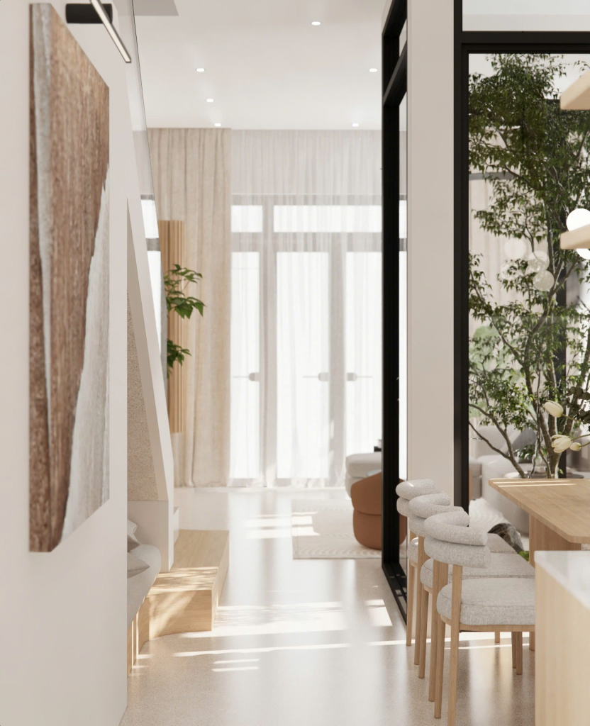 - Tích hợp cây xanh trong nhà với các bức tường xanh hoặc chậu cây lớn.